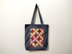 Karujog’s patchwork and Kantha embroidery feature motifs like lotus flowers, rivers, boats, and birds — telling the story of rural Bengal. The “Seloi” stitching technique gives every bag an identity, transforming simple fabric into living art.